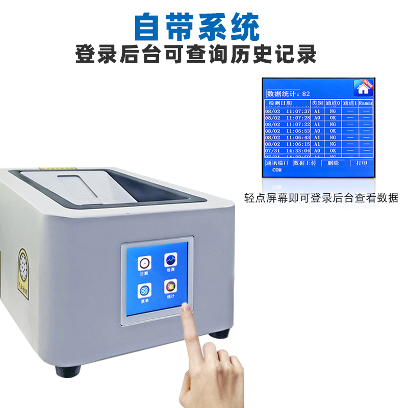 11、人機(jī)界面檢查:設(shè)備人機(jī)界面提供全中文界面,并且自帶光源。設(shè)備使用人員可根據(jù)工作環(huán)境通過觸摸屏設(shè)備參數(shù)。